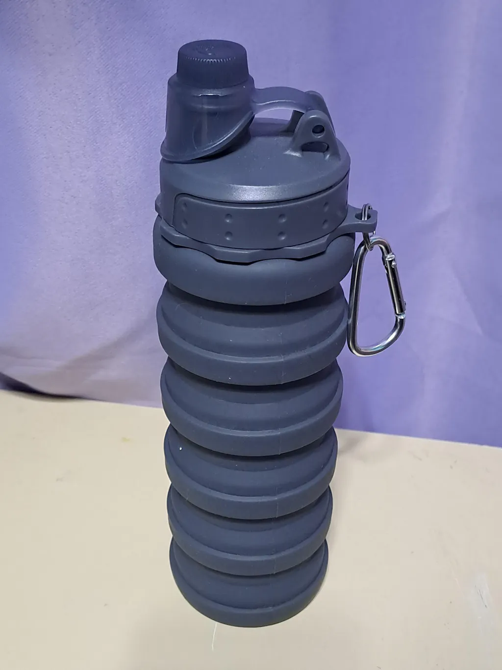 Buen producto, tal cual a la imagen, el material resistente, pero como es silicona es difícil que la botella se mantenga derecha al sostenerla, sin embargo no es un problema. Además, lo que si me acompleja un poco es que al mantener el agua por muchas horas en la botella, esta queda con el sabor a la silicona, espero que a medida que la vaya usando eso deje de pasar.