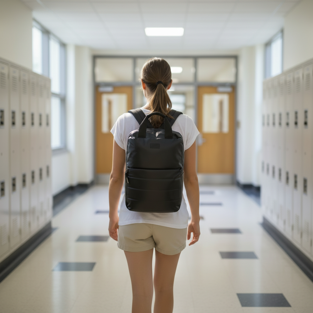 Mochila juvenil de 18 litros con compartimento principal y bolsillo frontal. Cuenta con bolsillo para laptop 15''.