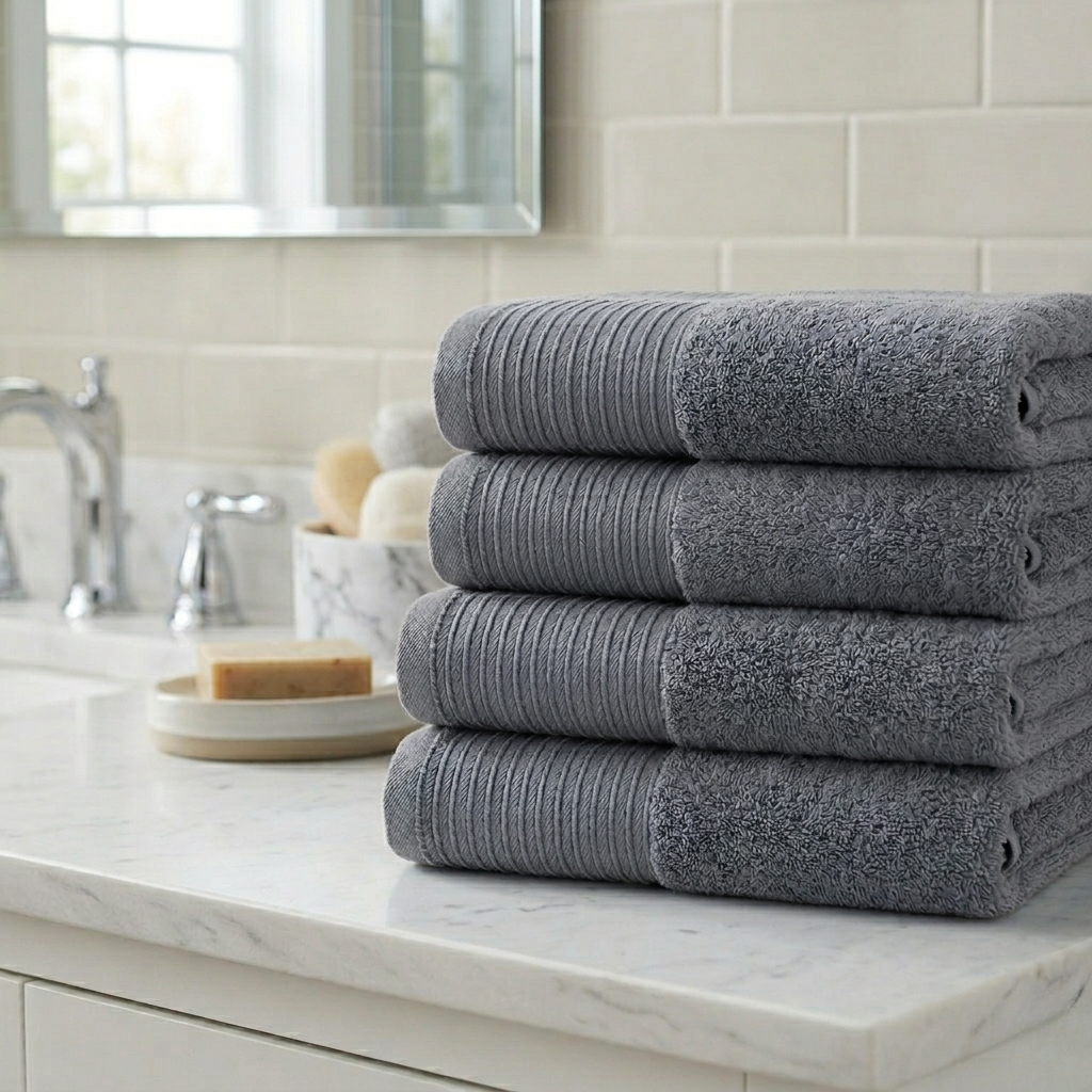 Set 4 Toallas De Baño Mashini Gris 90x150 cm