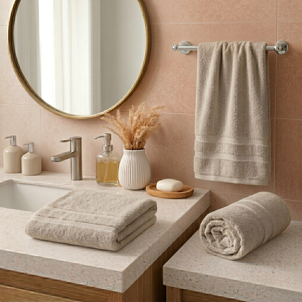 Renueva tu baño con este combo de toallas Soft Twist Mashini, ideal para una rutina diaria con suavidad, absorción superior y confort. Incluye 3 toallas color arena de 100% algodón en distintos tamaños, perfectas para secado del cuerpo, manos o uso complementario en el baño.