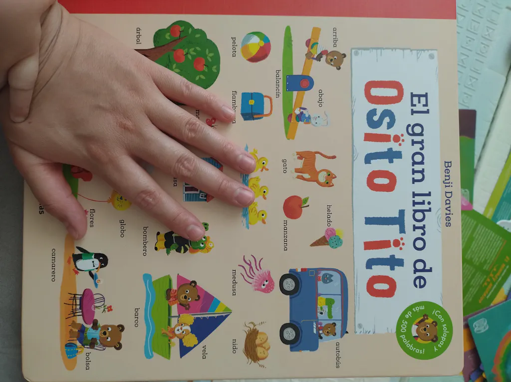 Acompaña a Osito Tito en una aventura educativa llena de diversión y descubrimiento. Este encantador libro infantil en formato grande incluye solapas interactivas y más de 500 palabras de vocabulario ilustradas, perfectas para estimular el aprendizaje temprano. Cada página invita a los niños y niñas a explorar, observar y ampliar su lenguaje de forma entretenida, fortaleciendo su confianza y curiosidad natural. Ideal para compartir en familia y fomentar los primeros pasos hacia una vida llena de conocimiento y lectura.