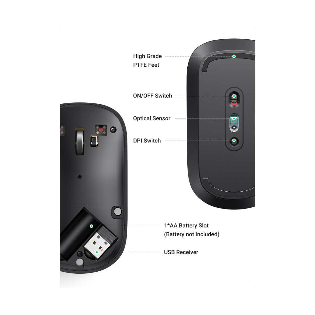 Mouse Inalambrico Ultra-Slim Gris Claro UGREEN MU001Descripción